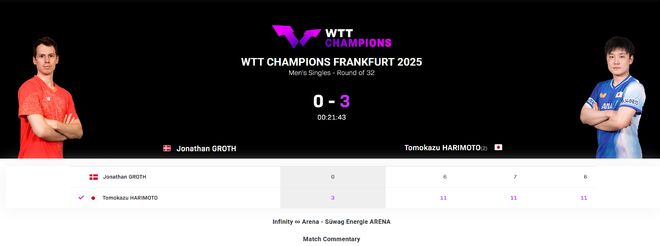 WTT法兰克福锦标赛男单1/16决赛中,张本杰和三局比分为11-6、11-7、11-6,以3-0击败格罗特。日本乒乓球初出茅庐的选手轻松赢得了这场比赛。第三届欧洲赛对于张本智和来说是一个绝佳的获胜机会,因为各国乒乓球运动员都没有到场。这场比赛打进决定性一分的张本智和握紧拳头,发出一声怒吼,他的怒吼声响彻了整个体育场。张本继和在伦敦获得第二名,但在蒙彼利埃获得第二名。法兰克福站是赢得欧洲全部三场比赛的最后机会。他的怒吼,也是为了给自己一点信心。志贺张本世界排名第4,格罗特世界排名第27。两人的世界排名差距巨大,而且格罗特已经是32岁的老将了。张本志贺轻松获胜。胜利之后,张本十和没有回避嘴角的笑容。让我们没想到的是法兰克福站会有中国球迷。一名中国粉丝发布了一段支持张本时和的视频。请注意,粉丝用中文说“走吧,走吧”。张本鹿一向她打招呼,微笑着点了点头。张本之娃是一个非常优秀的偶像。这是张本和张本之间的一场一边倒的比赛。首局双方都2-2领先后,张本直接将领先优势扩大到5-2,随后直接将领先优势扩大到9-3。格罗特竭尽全力将比分追至6-10,但最后的挫折却徒劳无功。第二场比赛,格罗特连扳平比分的进球都没有。开局阶段,志贺张本以3-0、6-2领先。在5-6落后的情况下,他们直接以4-0拿下局点。张本茨赢得太轻松了。第三局比赛双方打成1-1,但张本志贺很快连得三分。此后张本鹿一以6-3、8-4领先。格兰特在10-6赢得赛点后没有机会。