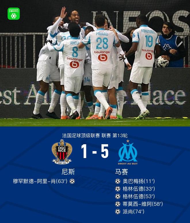 北京时间11月22日,法国顶级足球联赛第13轮比赛,尼斯主场迎战马赛。漂亮的穆罕默德·阿里·肖进球了。马赛奥巴梅扬进球,格林伍德梅开二度,蒂莫西·维阿进球,派桑进球。最终结果尼斯1-5马赛。第一个进球是在一场重要比赛的第12分钟打进的。奥巴梅扬门前破门。马赛1-0。第33分钟,尼斯解围不远。格林伍德的射门偏转并入网。马赛2-0。第53分钟,展现出良好个人技术的格林伍德低射再次锁定胜局。马赛3-0。第58分钟,奥巴梅扬传球找到蒂莫西·维阿破门。马赛4-0。第63分钟,迪奥普传球,阿里肖头球破门,1-4。第74分钟,派克桑在奥巴梅扬助攻下射门空门。马赛5-1。美妙的时刻,裁判吹响了哨子。第12分钟,比赛正式开始。菲第一条记录已打开。奥巴梅扬门前破门。马赛1-0。马赛第31分钟做出回应。第33分钟,格林伍德避开角度射门,但被扑出。第33分钟,尼斯解围不远。格林伍德的射门偏入球门,马赛2-0。第44分钟,墨菲脚后跟射门。马赛门将德斯朗格斯将球扑出。我们在第45分钟和第3分钟错失了好机会。派山的射门被挡出。第53分钟,凭借着不俗的个人技术,格林伍德再次低射。一城3-0马赛。第58分钟,奥巴梅扬传球找到蒂莫西·维阿破门。马赛4-0。第63分钟,迪奥普传球,阿里肖头球攻门。好1-4。第74分钟,在奥巴梅扬的助攻下,派克桑攻入空门。马赛5-1。第87分钟,球迷发射人工火力,比赛被迫暂停。技术统计特别提示:以上内容(包括图片、视频,如有)由自媒体平台“网易A”提供,由“账号”用户上传发布,本平台仅提供信息存储服务。